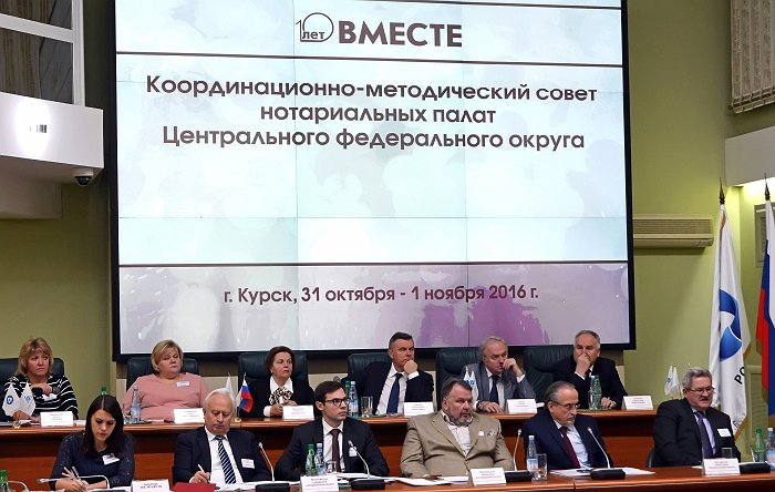 С 31 октября по 1 ноября 2016 г. в Курске прошло юбилейное, десятое заседание Координационно-методического совета нотариальных палат Центрального федерального округа (КМС ЦФО). Предметом обсуждения участников КМС стали вопросы правоприменительной практики последних новелл законодательства о нотариате.